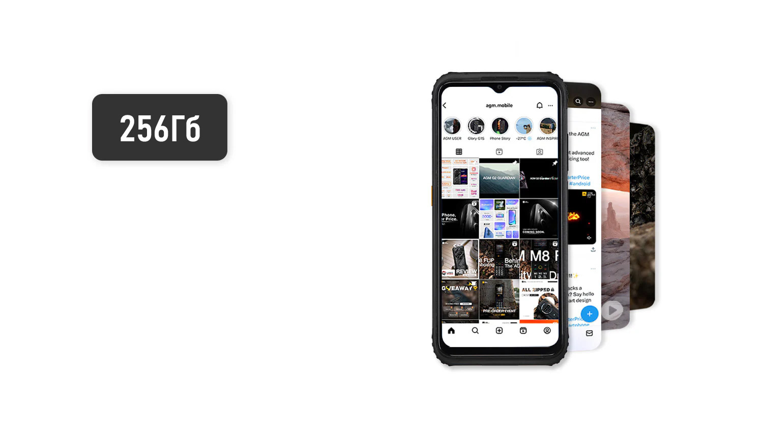 Впечатляющий объём накопителя ёмкостью 256Гб, вдвое больше, чем в предыдущей модели AGM H5. Храните воспоминания в фотографиях, на видео, скачивайте шоу. Будьте уверены, памяти AGM H6 достаточно для Ваших задач.